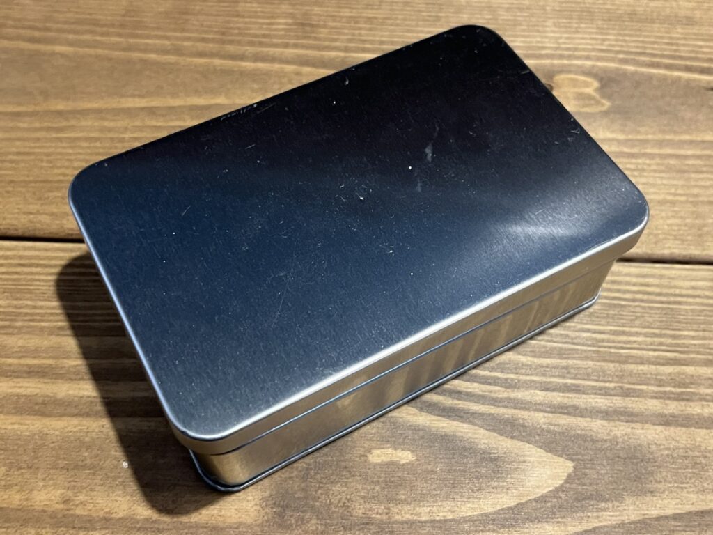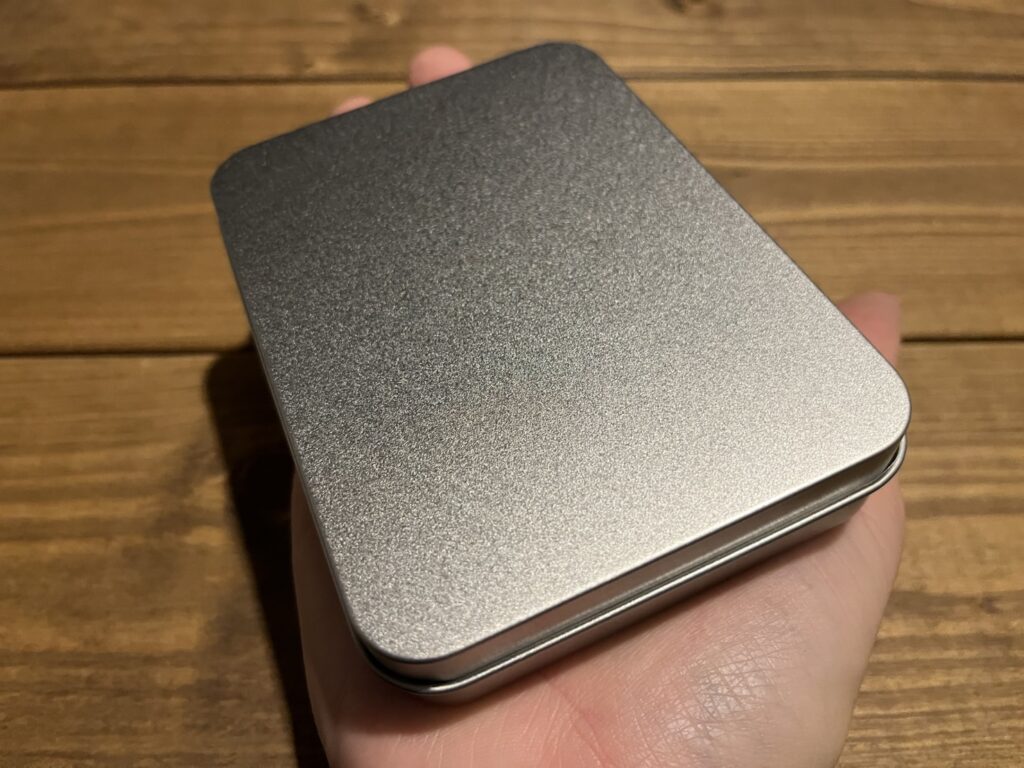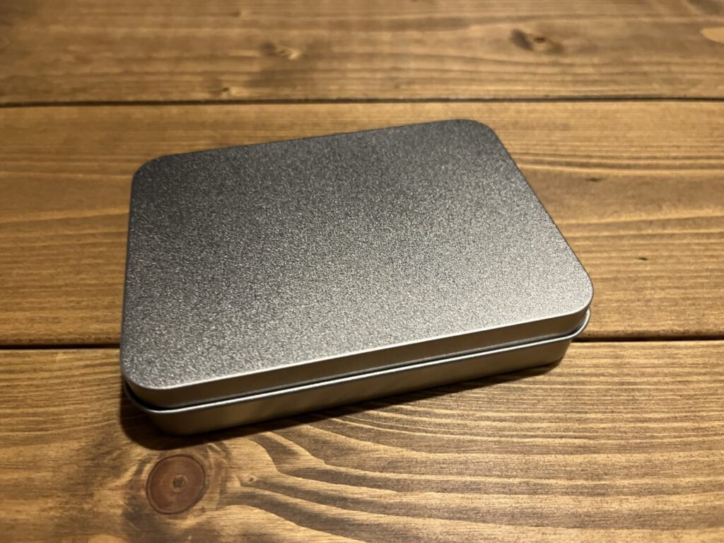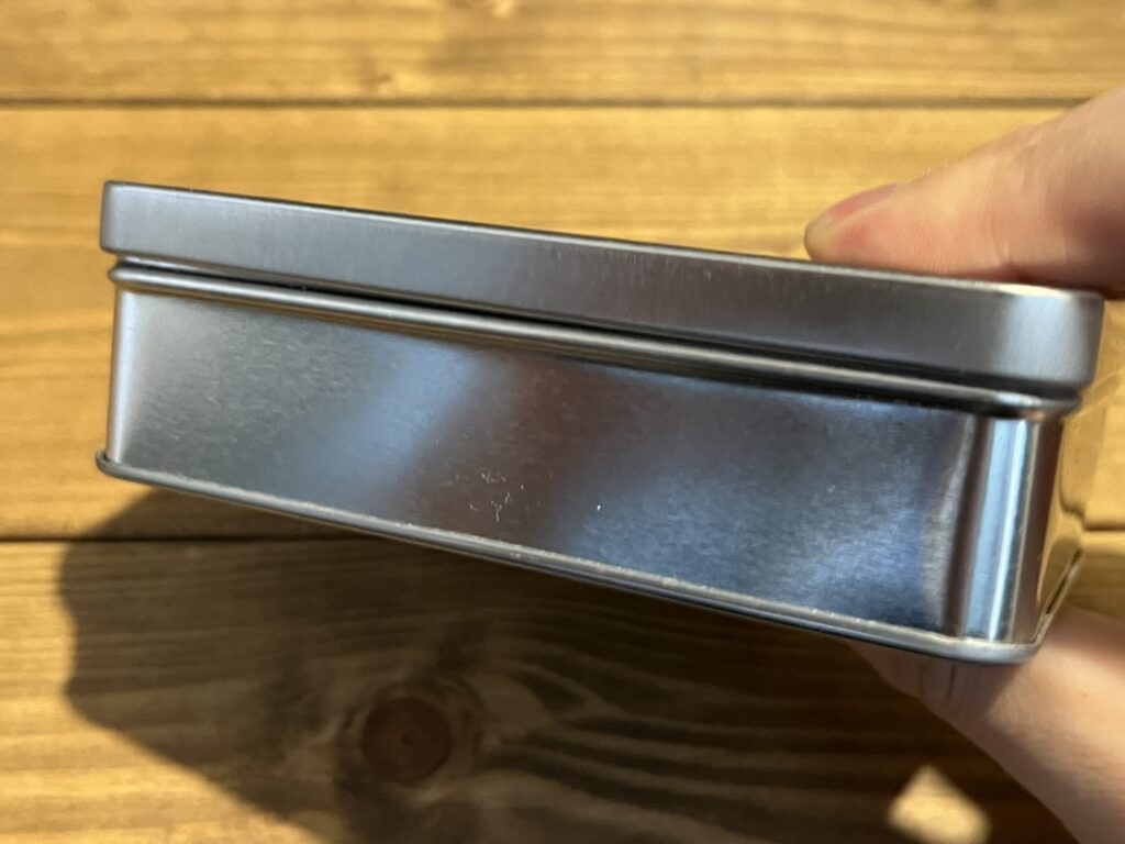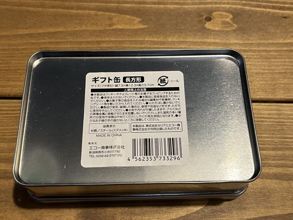 ギフト缶というセリアの商品でサイズは縦7.9×横12.3×高さ3.7㎝です。