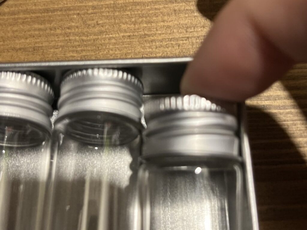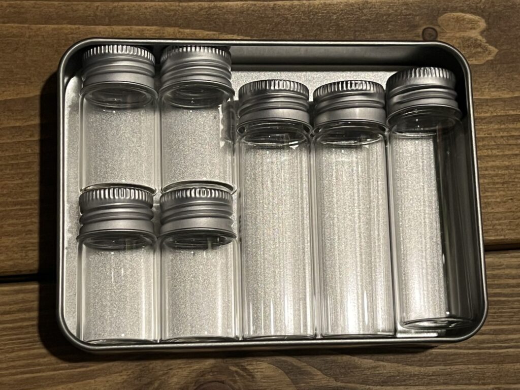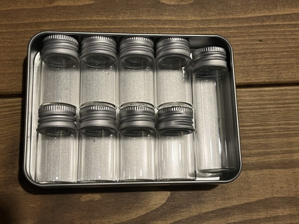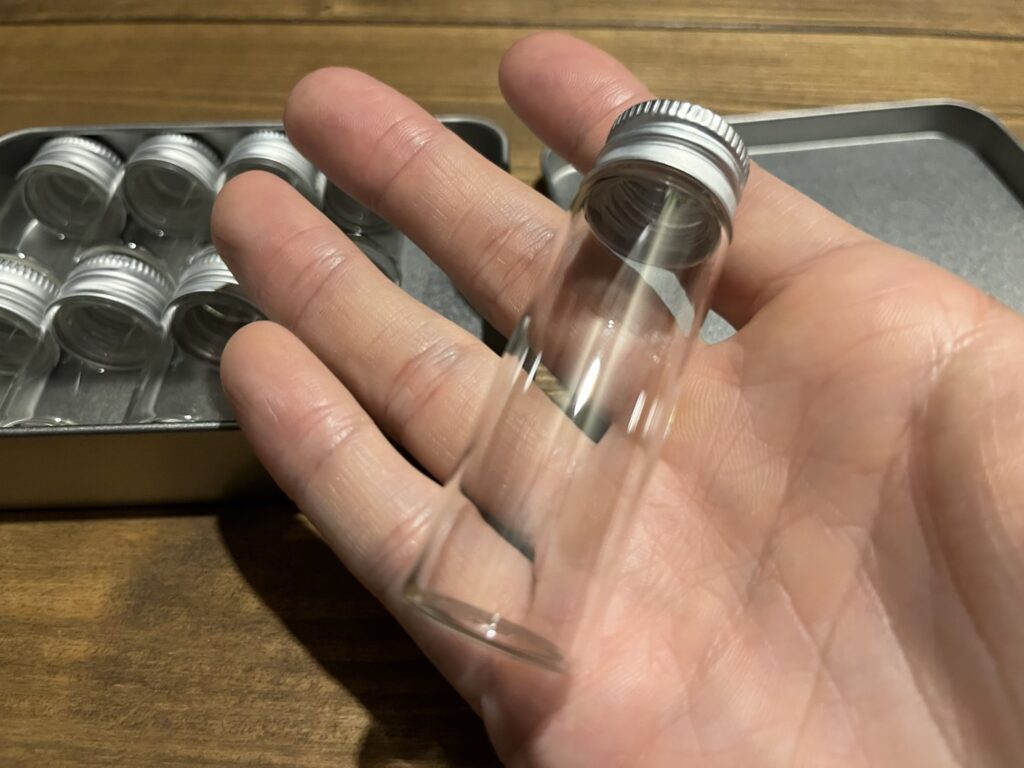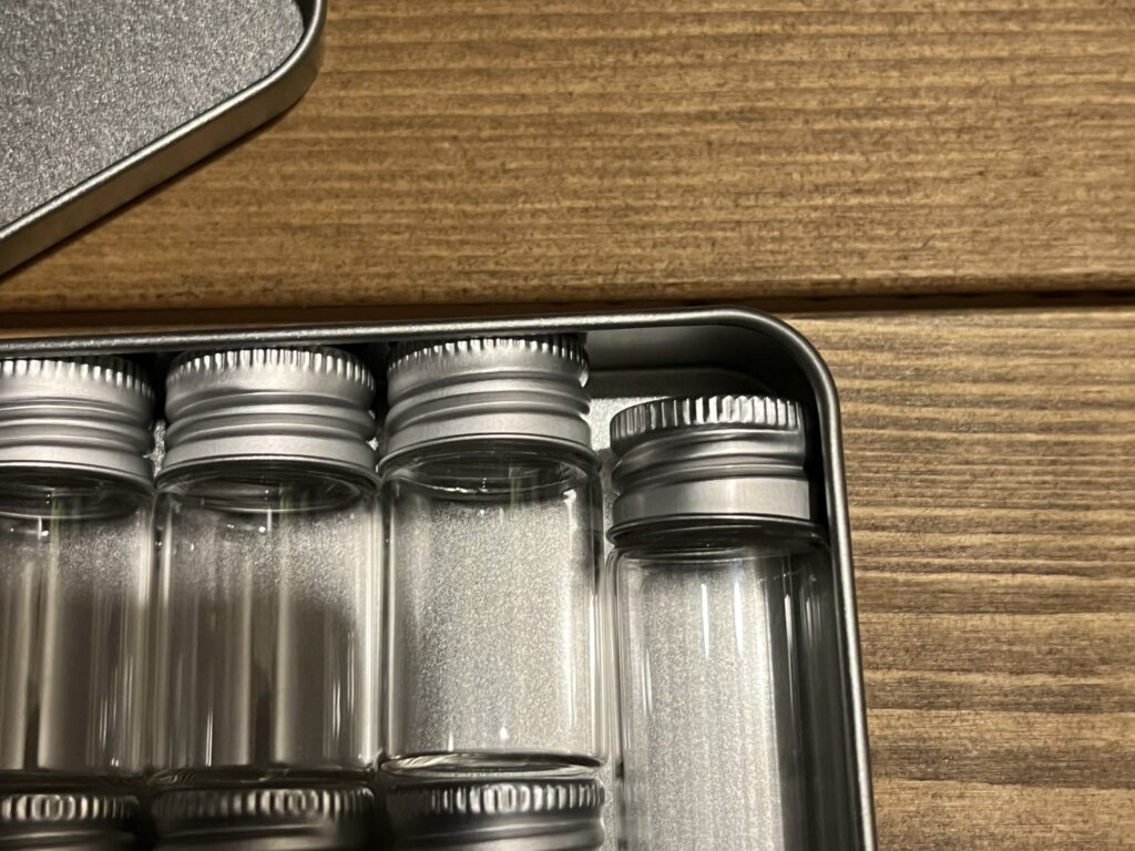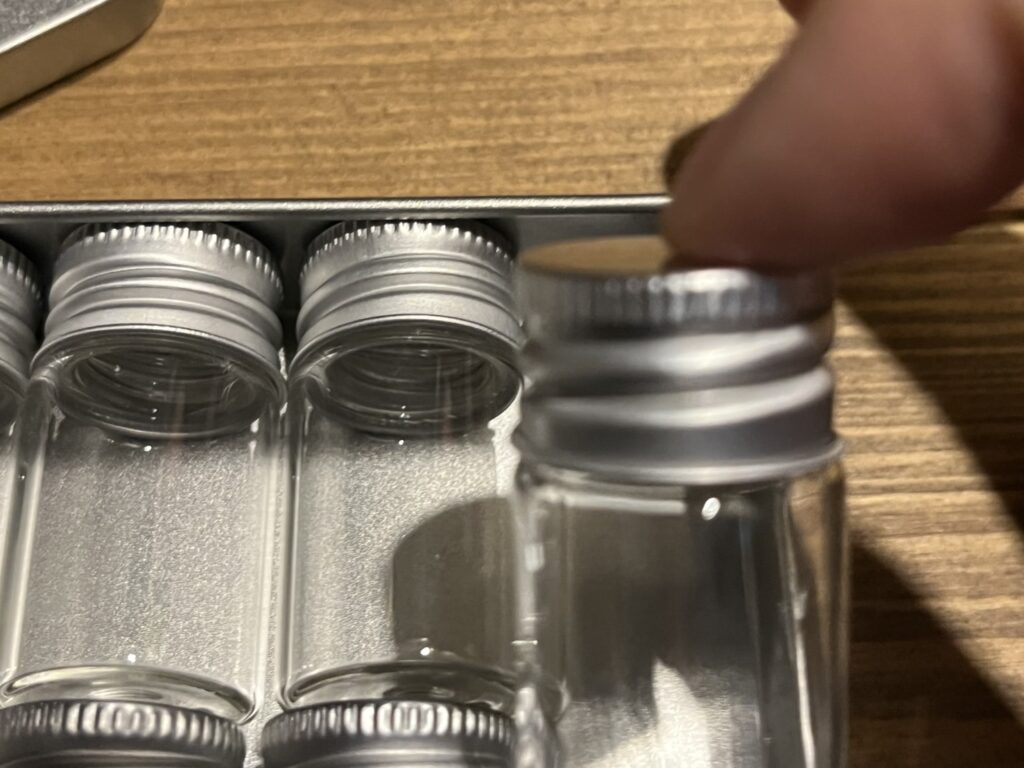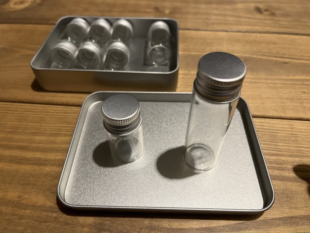8mlの小瓶は2つ入れてピッタリサイズすぎて取り出すことができません。